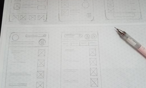 Low-fidelity wireframes reflect the basic app flow and results of the initial research.