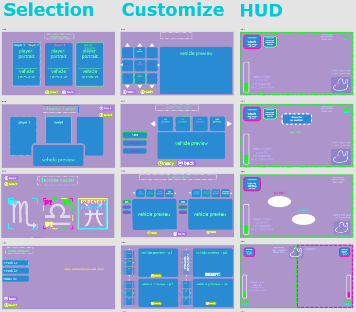 The UI reflected information integral to game design and gave the feedback necessary to ensure the player would have the smoothest control over their racer.