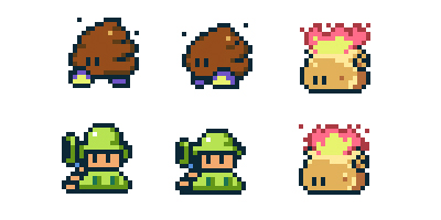 16x16 sprites with 2-3 frame animations evoked retro-style arcade play.